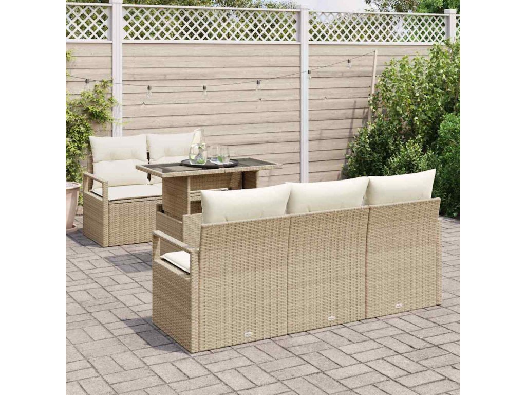Set pohovek s polštářem 6 pcs béžová a krémová polyratan 3348737