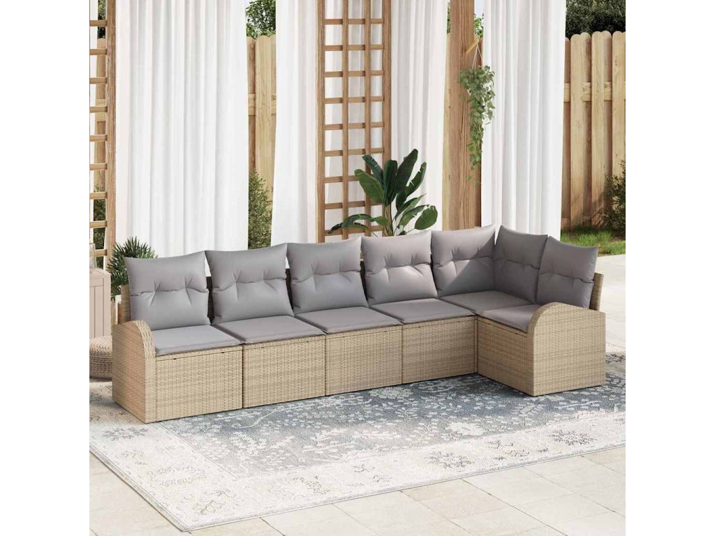 Set pohovek s polštářem 6 pcs béžová a světle šedá polyratan 3354729