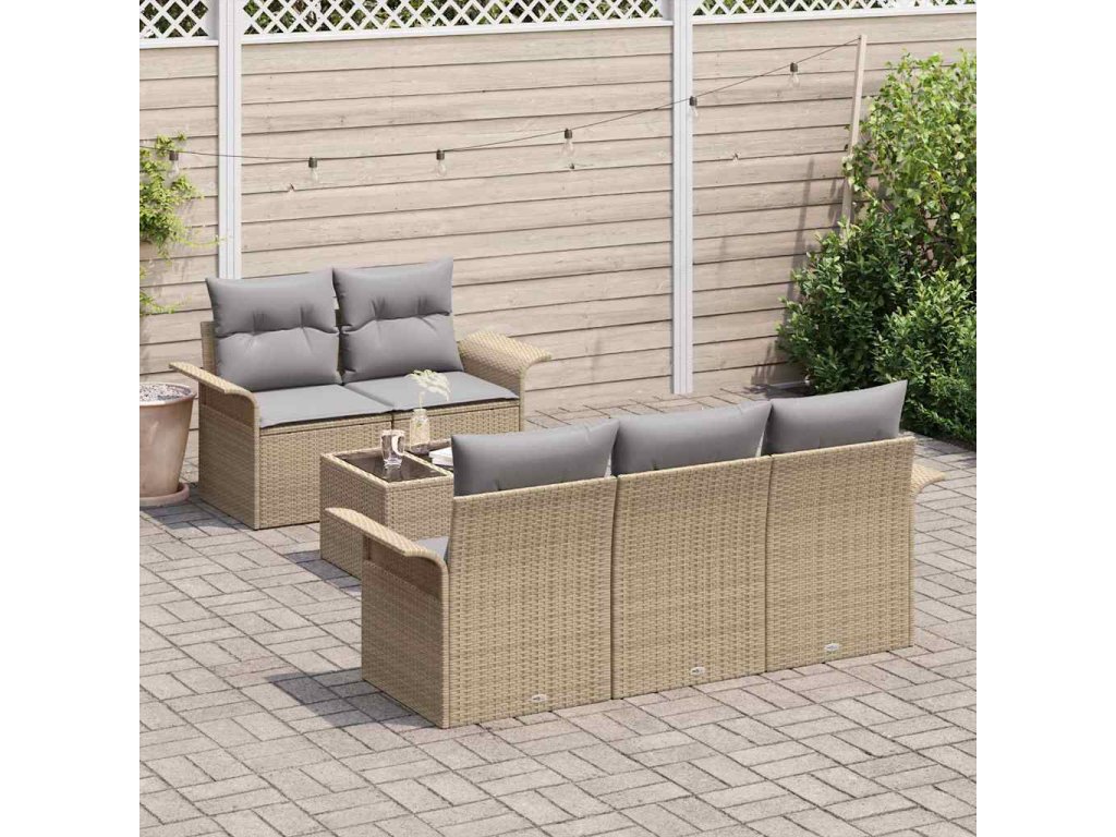 Set pohovek s polštářem 6 pcs Béžová polyratan 3345240