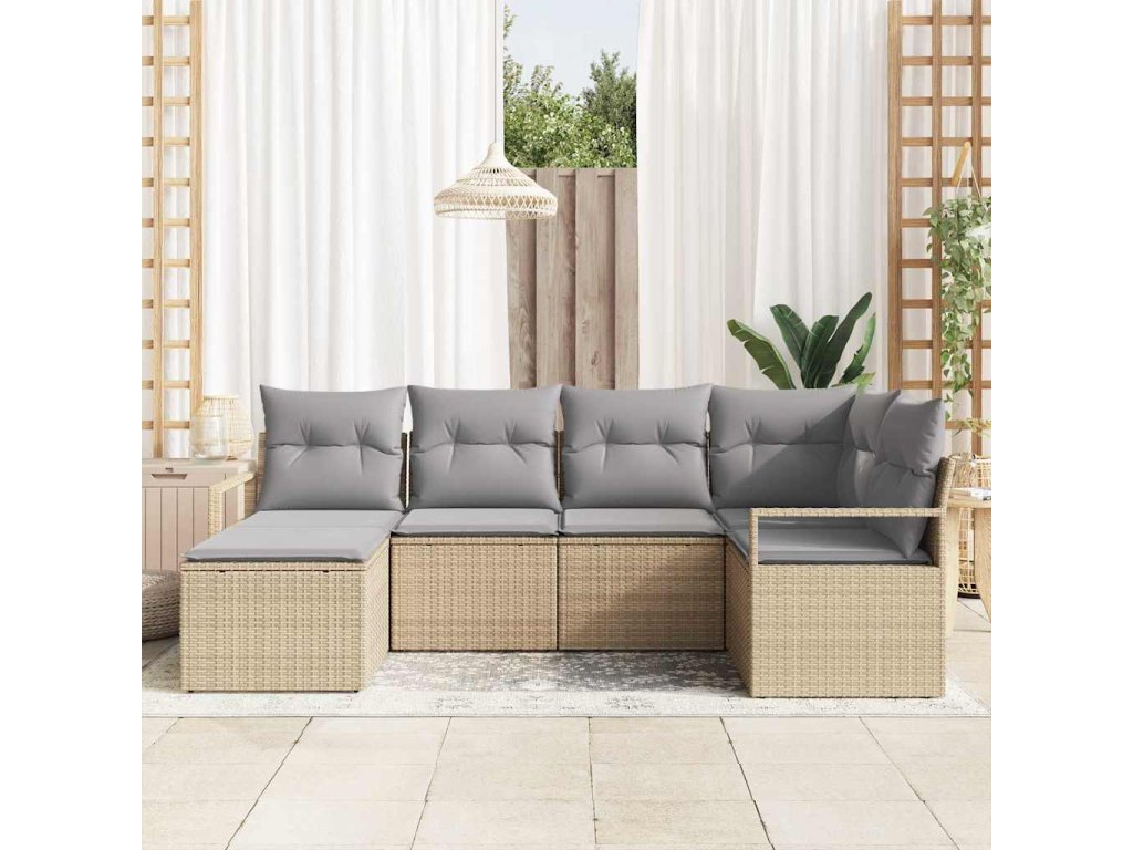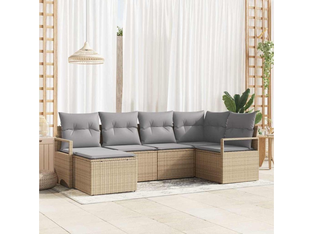 Set pohovek s polštářem 6 pcs Béžová polyratan 3346450