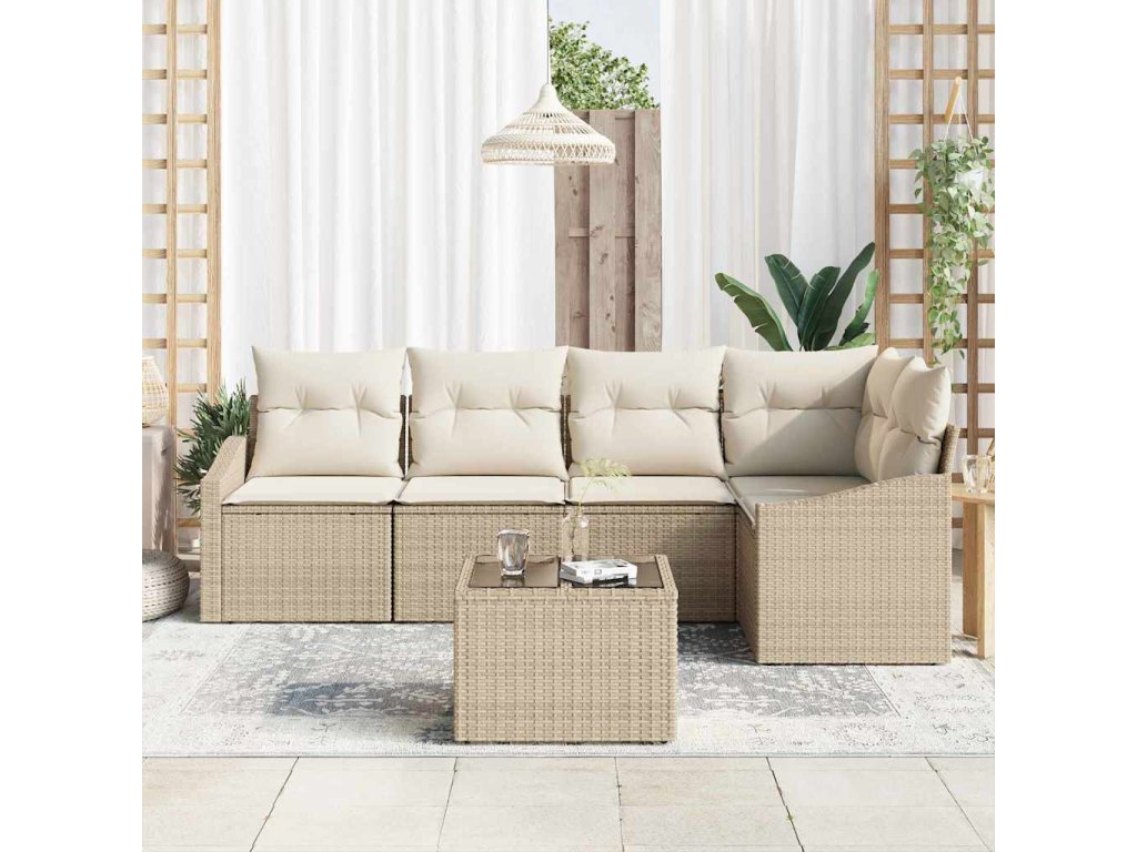 Set pohovek s polštářem 6 pcs Béžová polyratan 3346731