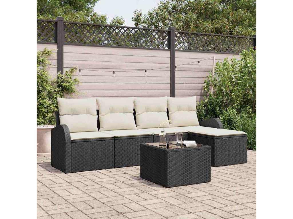 Set pohovek s polštářem 6 pcs Černá a bílá polyratan 3354676