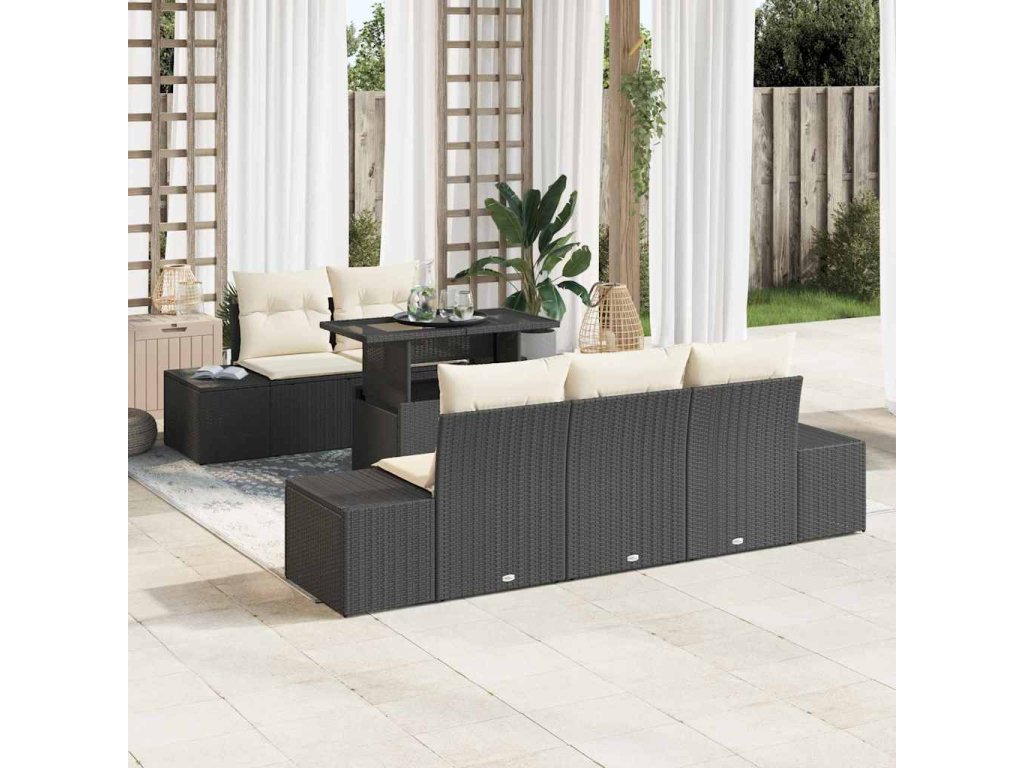Set pohovek s polštářem 6 pcs Černá a krémová polyratan 3349093