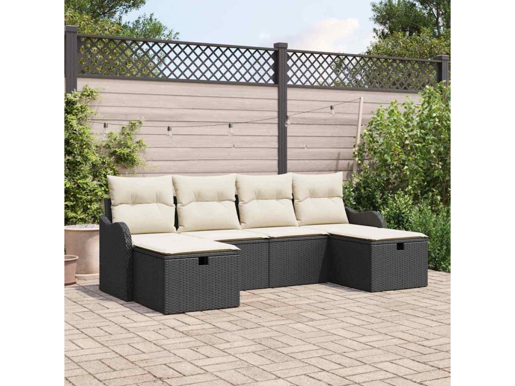 Set pohovek s polštářem 6 pcs Černá a krémová polyratan 3359016