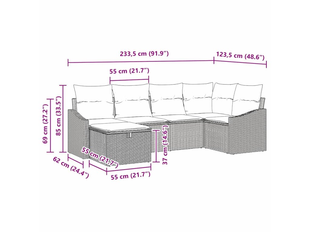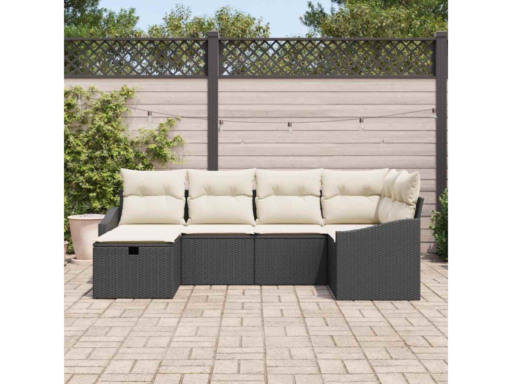 Set pohovek s polštářem 6 pcs Černá a krémová polyratan 3359276