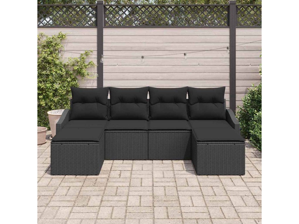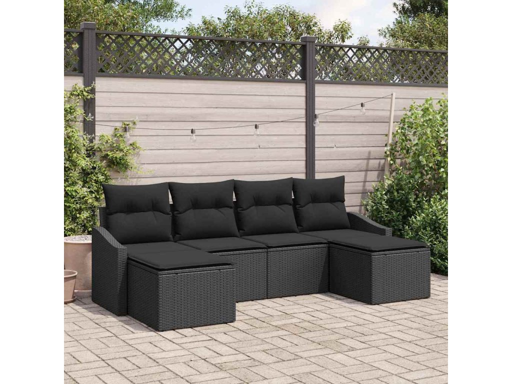 Set pohovek s polštářem 6 pcs Černá polyratan 3346833