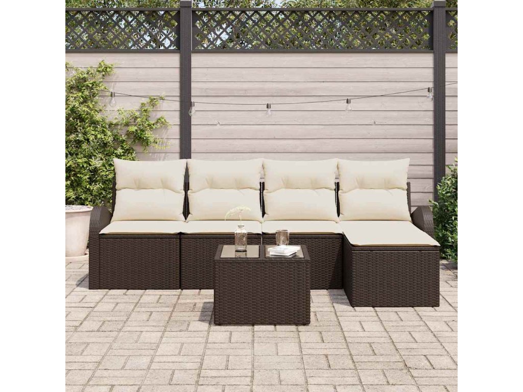 Set pohovek s polštářem 6 pcs Hnědá a bílá polyratan 3354677