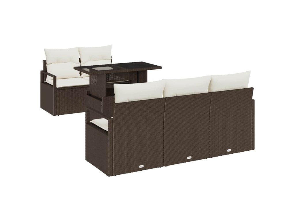 Set pohovek s polštářem 6 pcs Hnědá a krémová polyratan 3348734