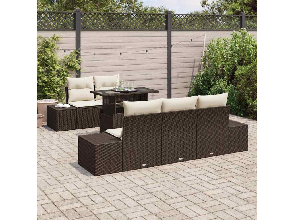 Set pohovek s polštářem 6 pcs Hnědá a krémová polyratan 3349094