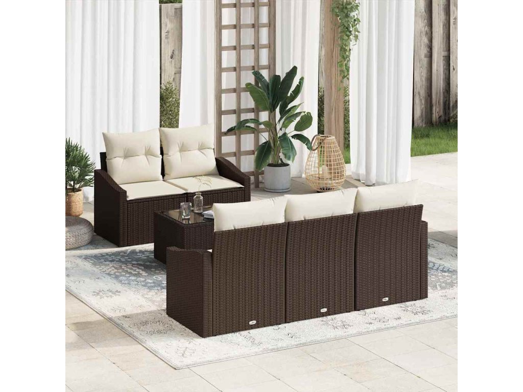 Set pohovek s polštářem 6 pcs Hnědá a krémová polyratan 3355267