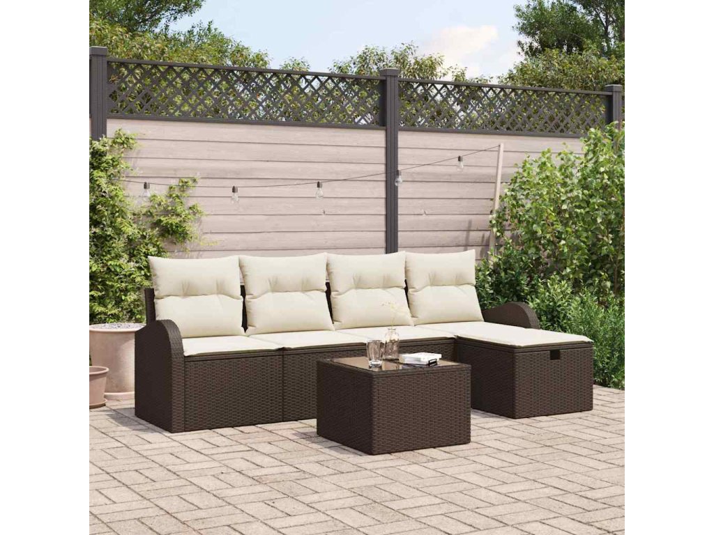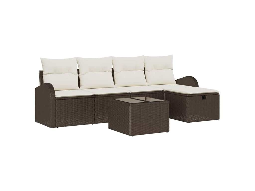 Set pohovek s polštářem 6 pcs Hnědá a krémová polyratan 3359067