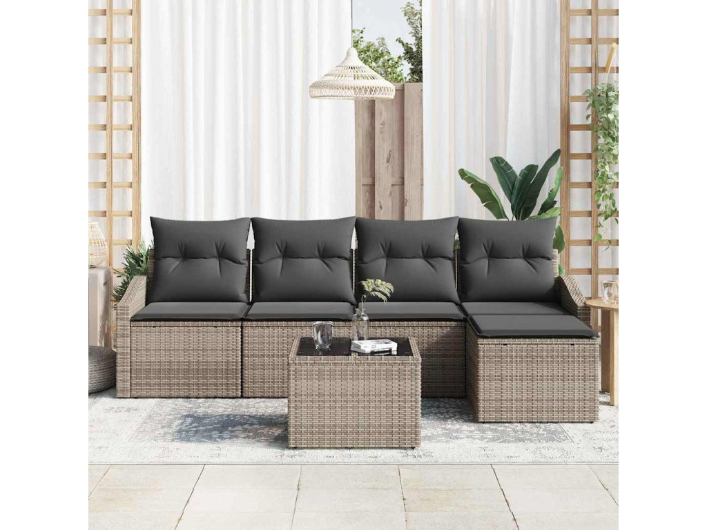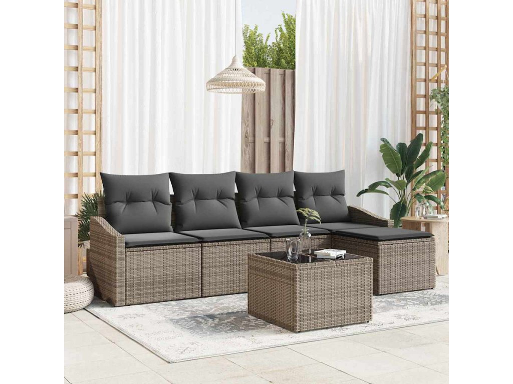 Set pohovek s polštářem 6 pcs Šedá polyratan 3346689