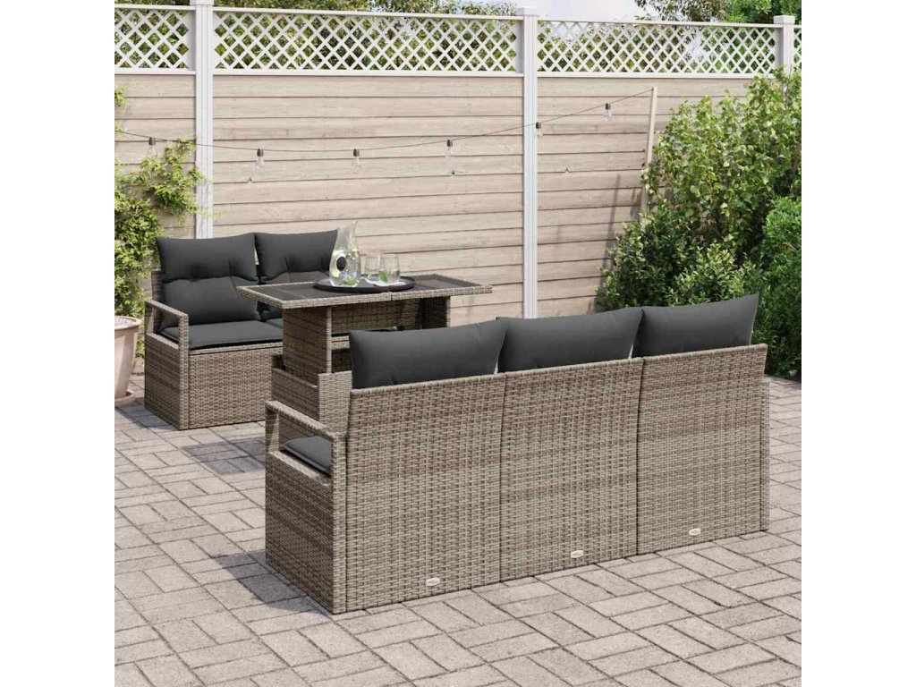 Set pohovek s polštářem 6 pcs Šedá polyratan 3348735