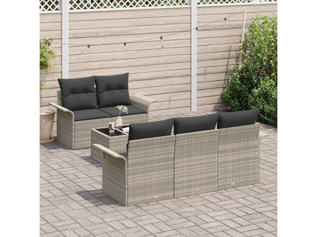 Set pohovek s polštářem 6 pcs Světle šedá polyratan 3345242