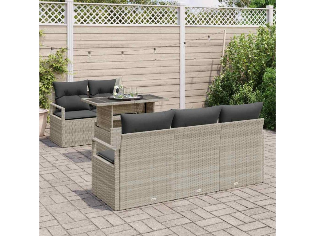Set pohovek s polštářem 6 pcs Světle šedá polyratan 3348738