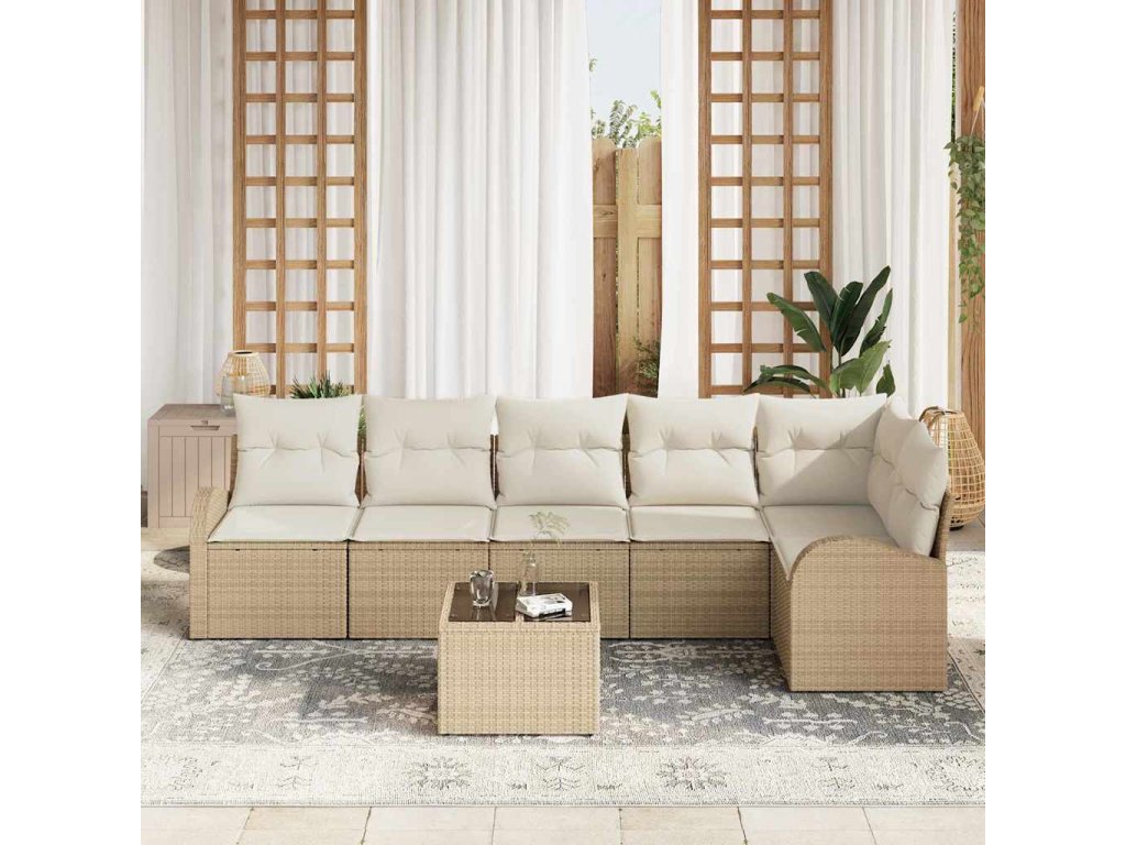 Set pohovek s polštářem 7 pcs Béžová a bílá polyratan 3354740