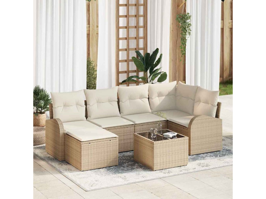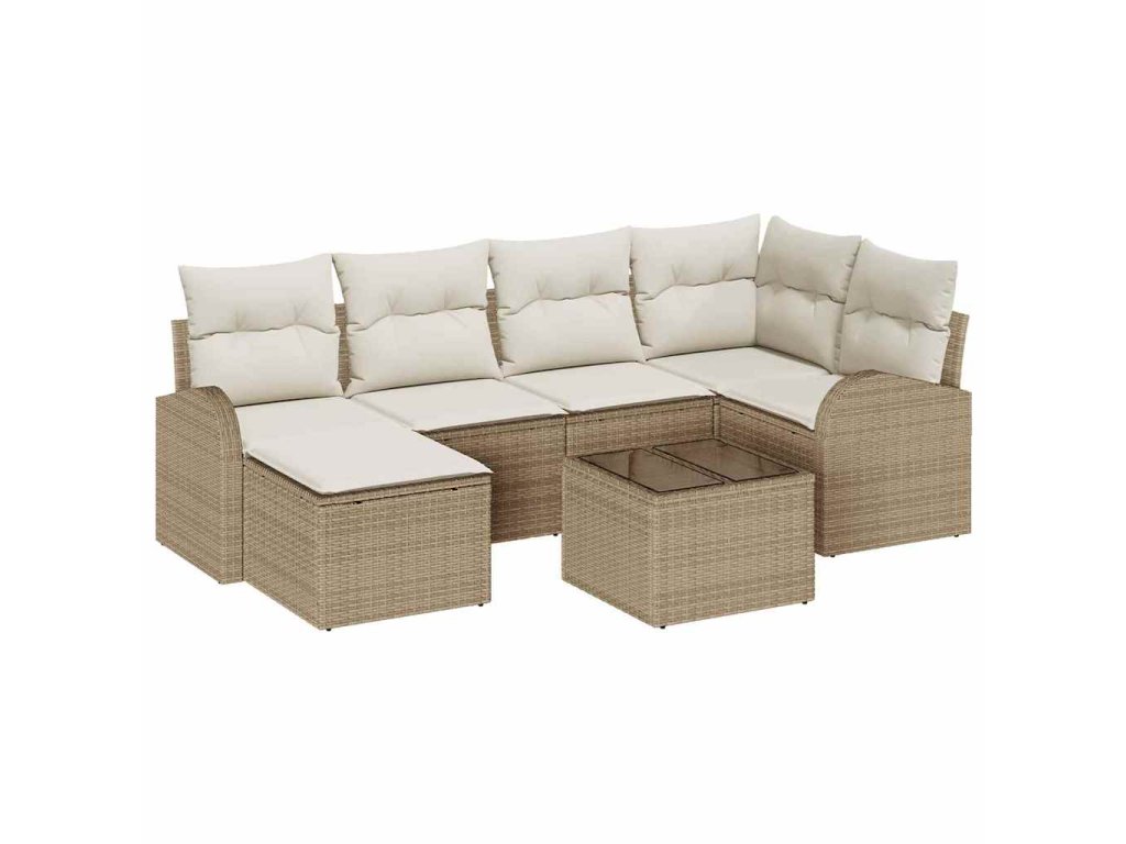 Set pohovek s polštářem 7 pcs Béžová a bílá polyratan 3354790