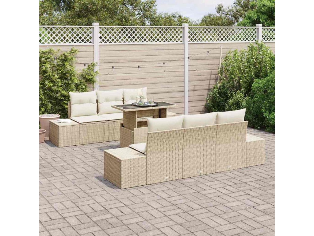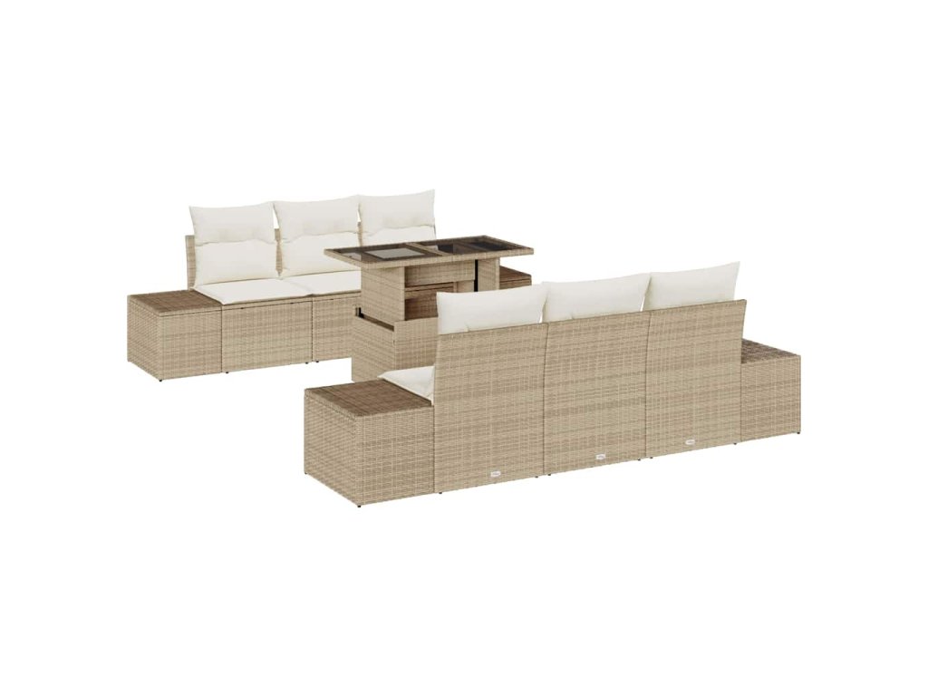 Set pohovek s polštářem 7 pcs Béžová a krémová polyratan 3349107
