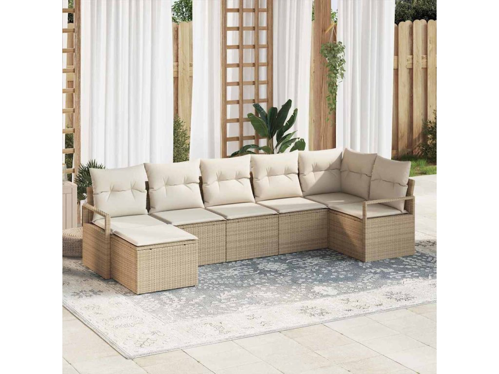 Set pohovek s polštářem 7 pcs Béžová a krémová polyratan 3355140