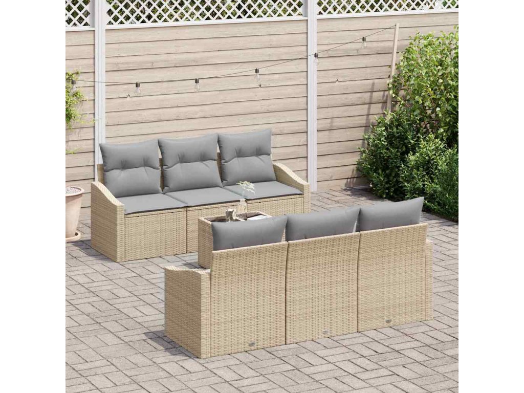 Set pohovek s polštářem 7 pcs Béžová a Světle šedá polyratan 3346610