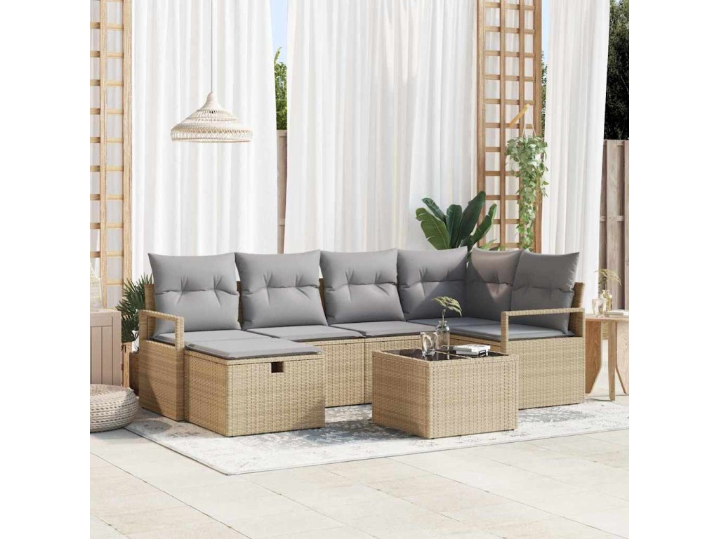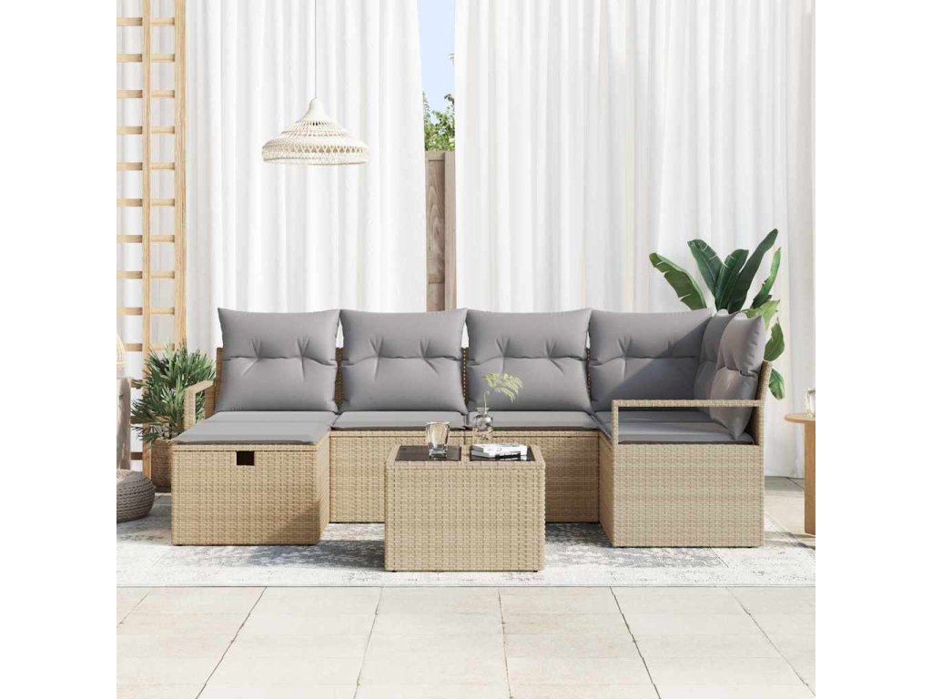 Set pohovek s polštářem 7 pcs Béžová a Světle šedá polyratan 3359189