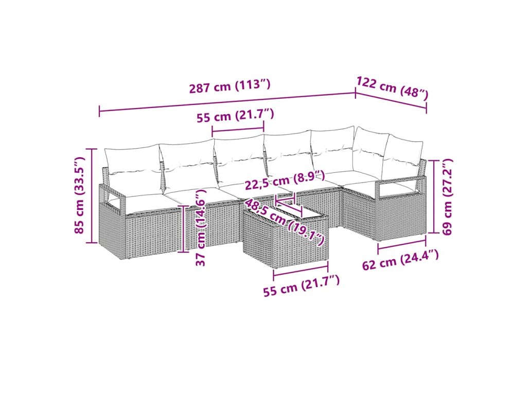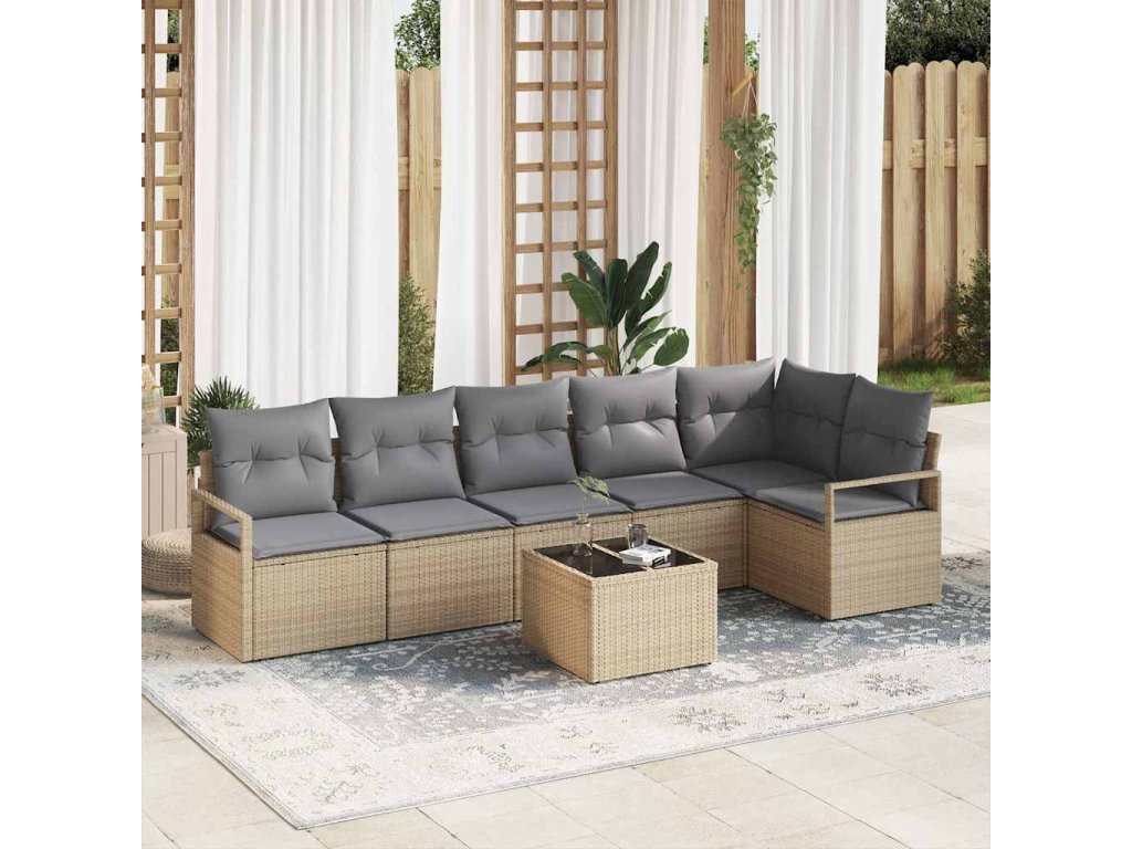 Set pohovek s polštářem 7 pcs Béžová polyratan 3346410