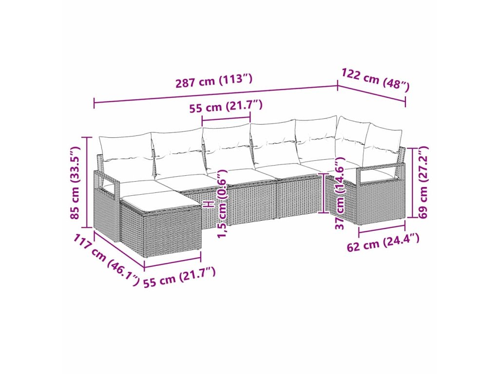 Set pohovek s polštářem 7 pcs Béžová polyratan 3346470