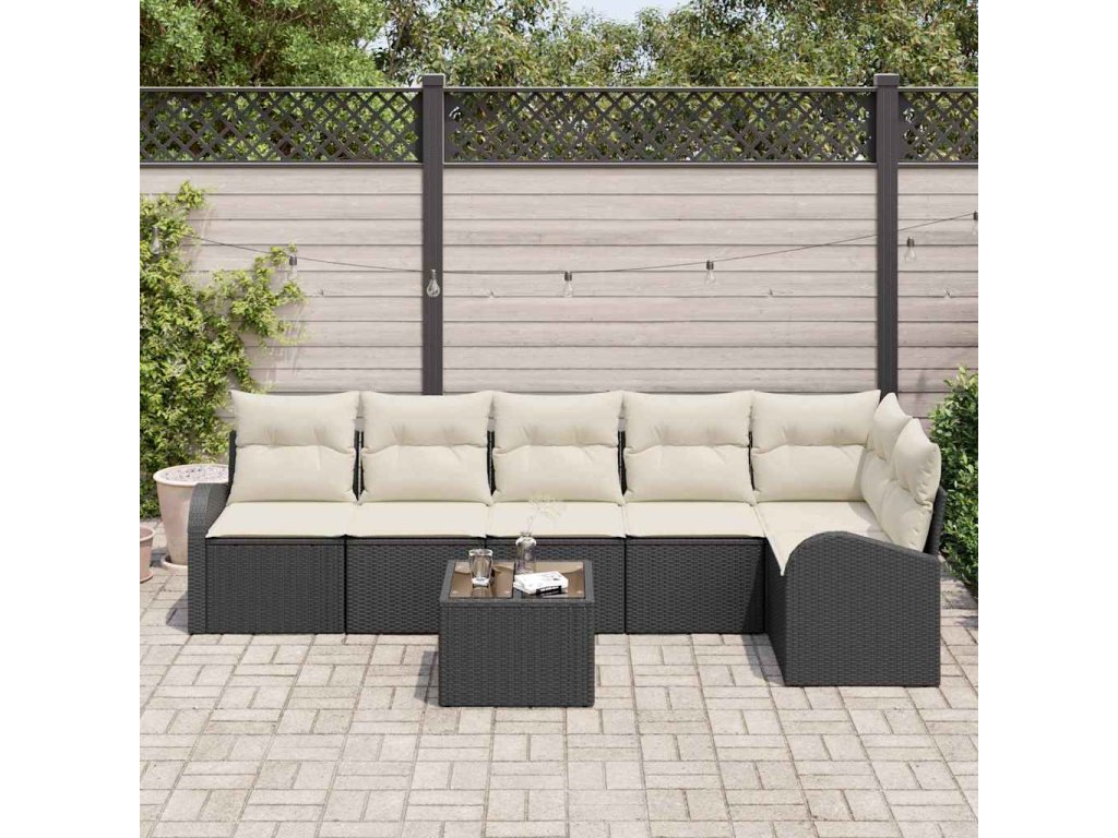 Set pohovek s polštářem 7 pcs Černá a bílá polyratan 3354736