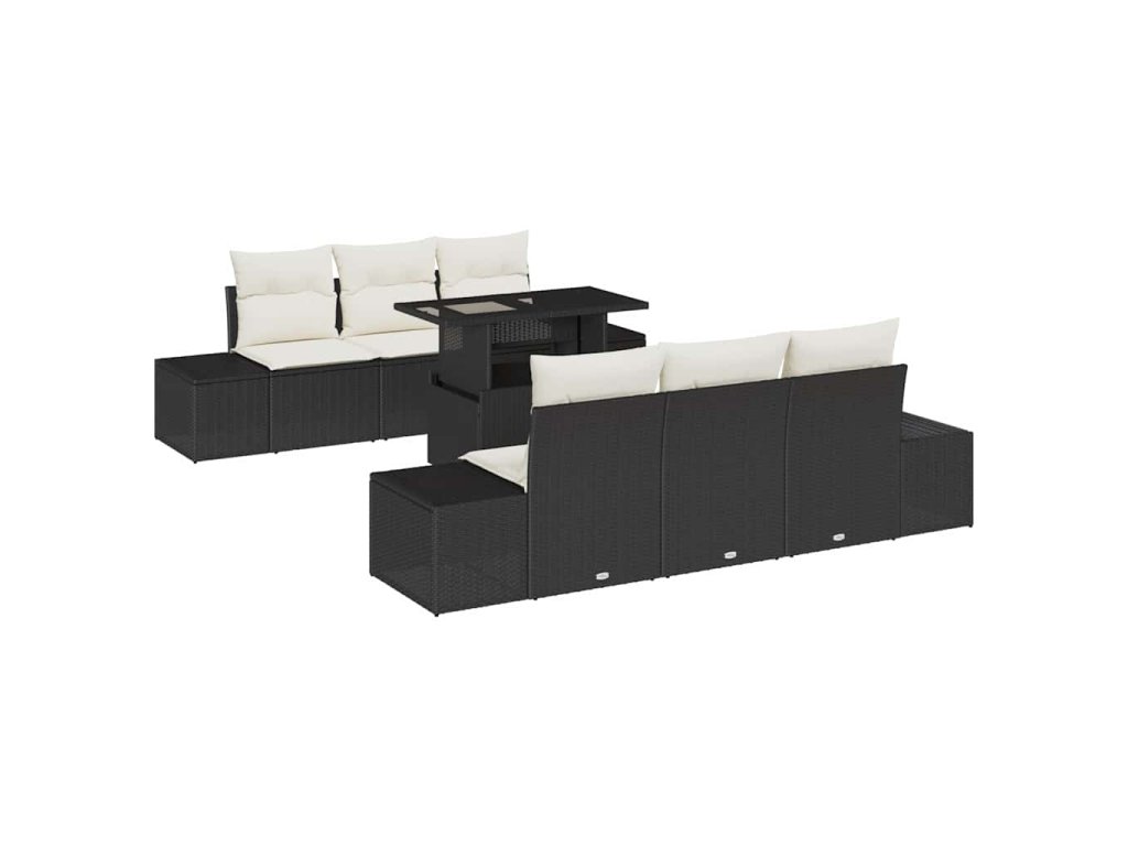 Set pohovek s polštářem 7 pcs Černá a krémová polyratan 3349103