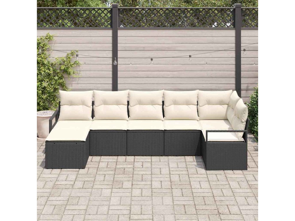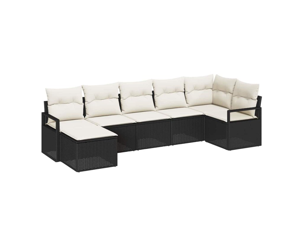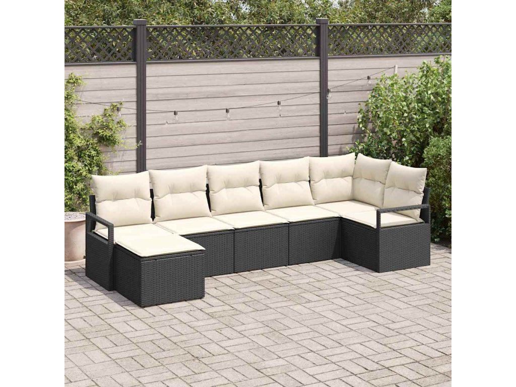 Set pohovek s polštářem 7 pcs Černá a krémová polyratan 3355136