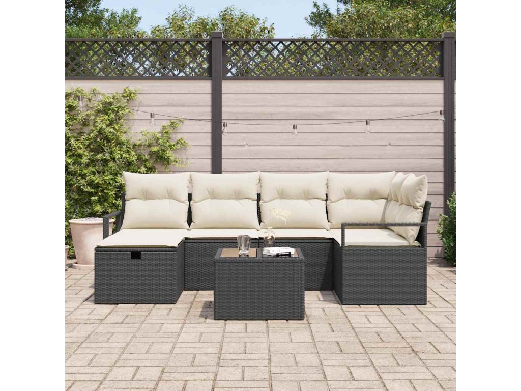 Set pohovek s polštářem 7 pcs Černá a krémová polyratan 3359186
