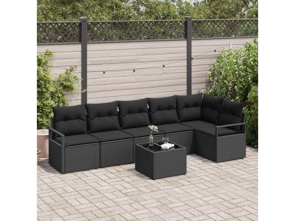 Set pohovek s polštářem 7 pcs Černá polyratan 3346413