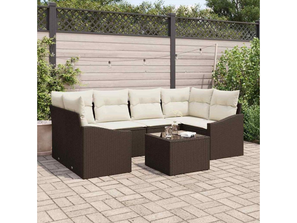 Set pohovek s polštářem 7 pcs Hnědá a krémová polyratan 3355287