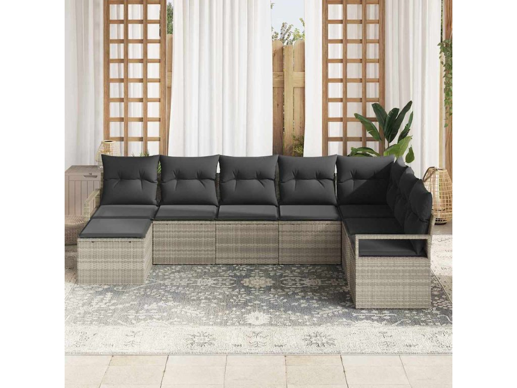 Set pohovek s polštářem 7 pcs Světle šedá polyratan 3346472