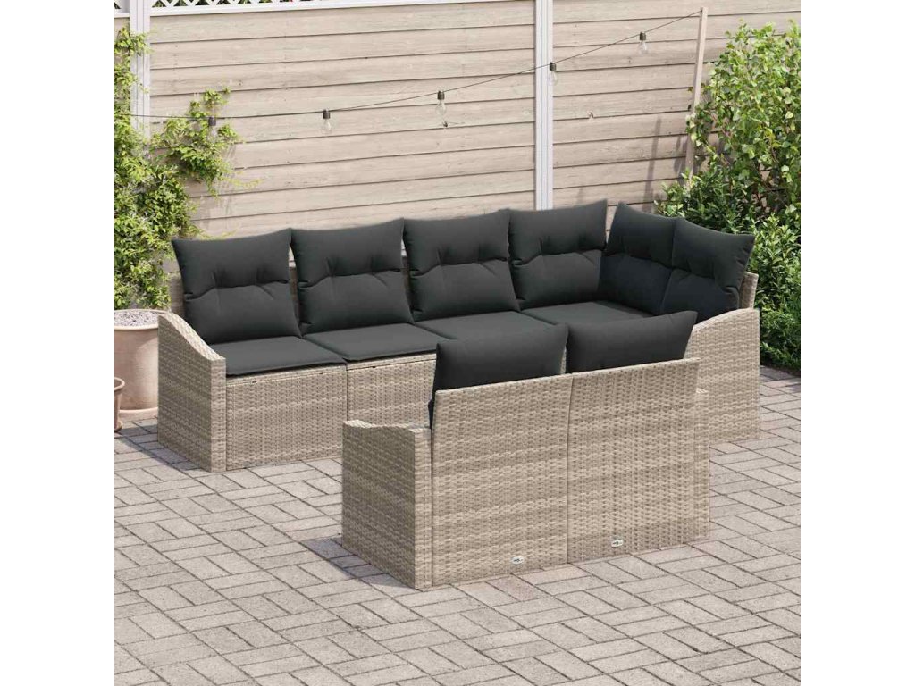 Set pohovek s polštářem 7 pcs Světle šedá polyratan 3346762