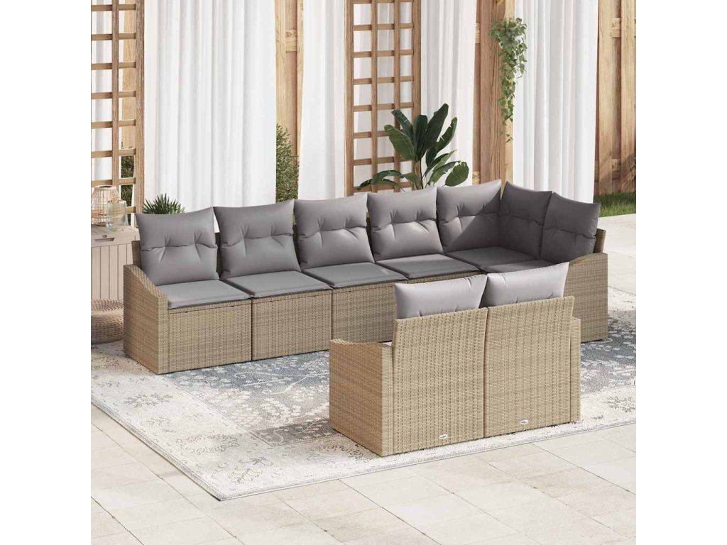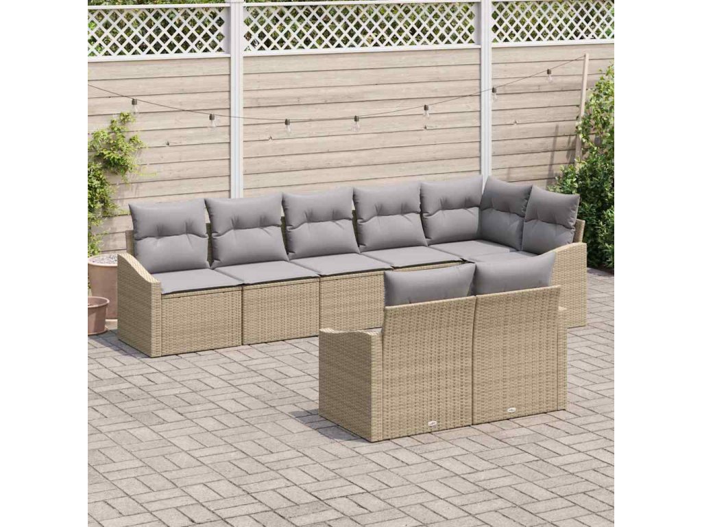 Set pohovek s polštářem 8 pcs Béžová polyratan 3346770
