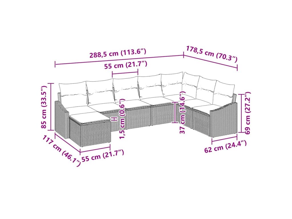 Set pohovek s polštářem 8 pcs Béžová polyratan 3346841