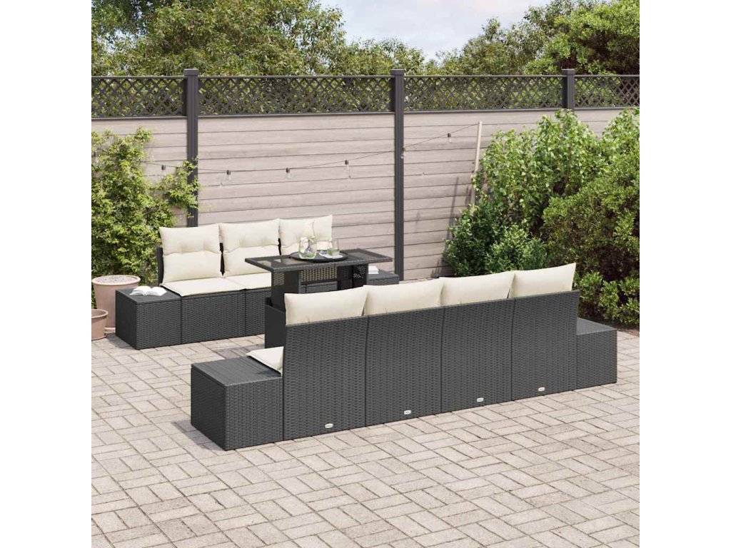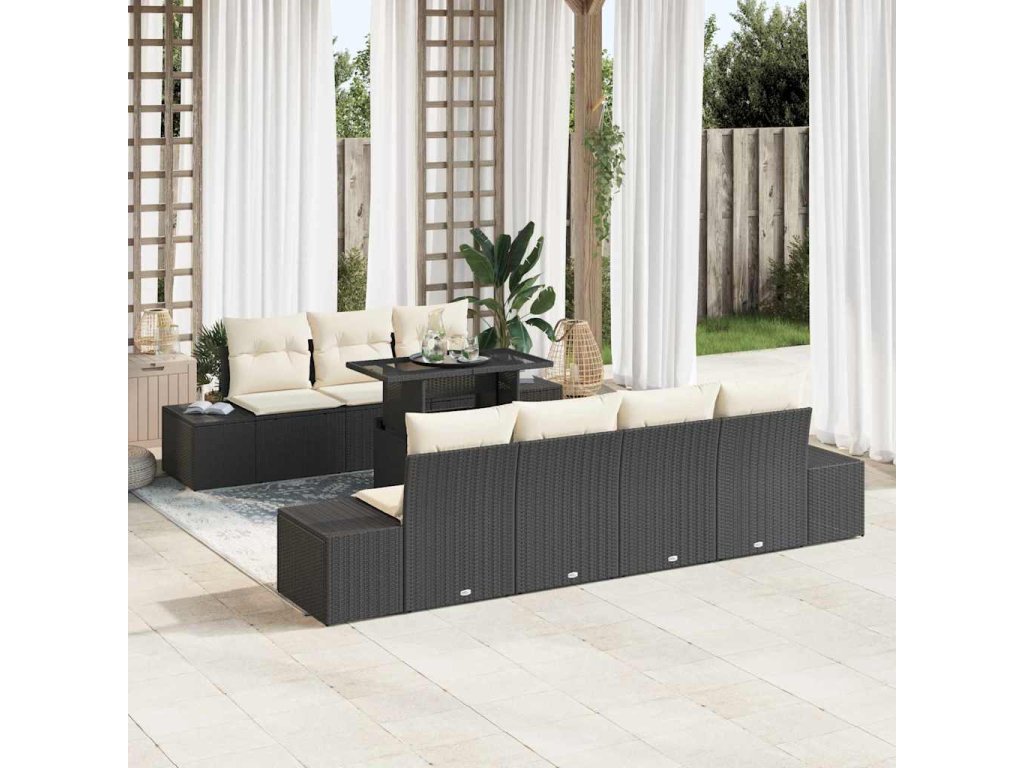 Set pohovek s polštářem 8 pcs Černá a krémová polyratan 3349123