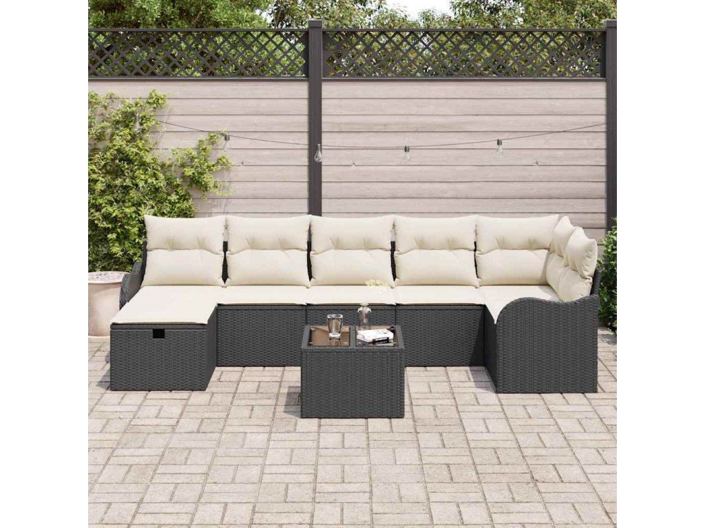 Set pohovek s polštářem 8 pcs Černá a krémová polyratan 3359006