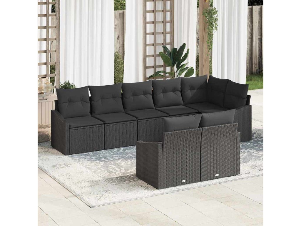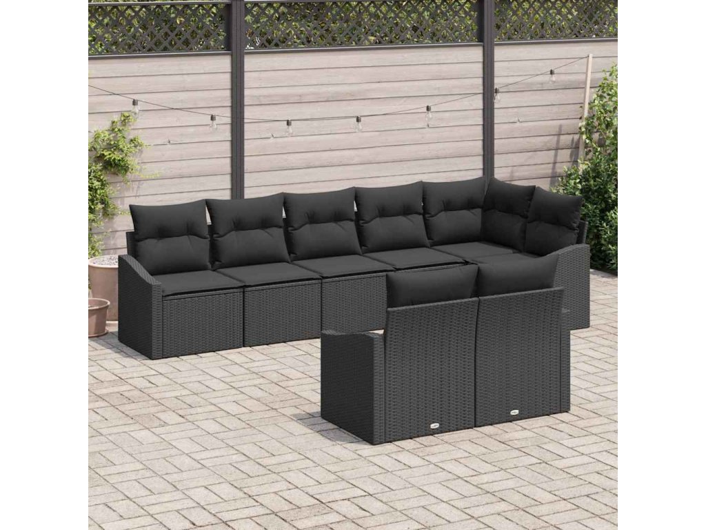 Set pohovek s polštářem 8 pcs Černá polyratan 3346773