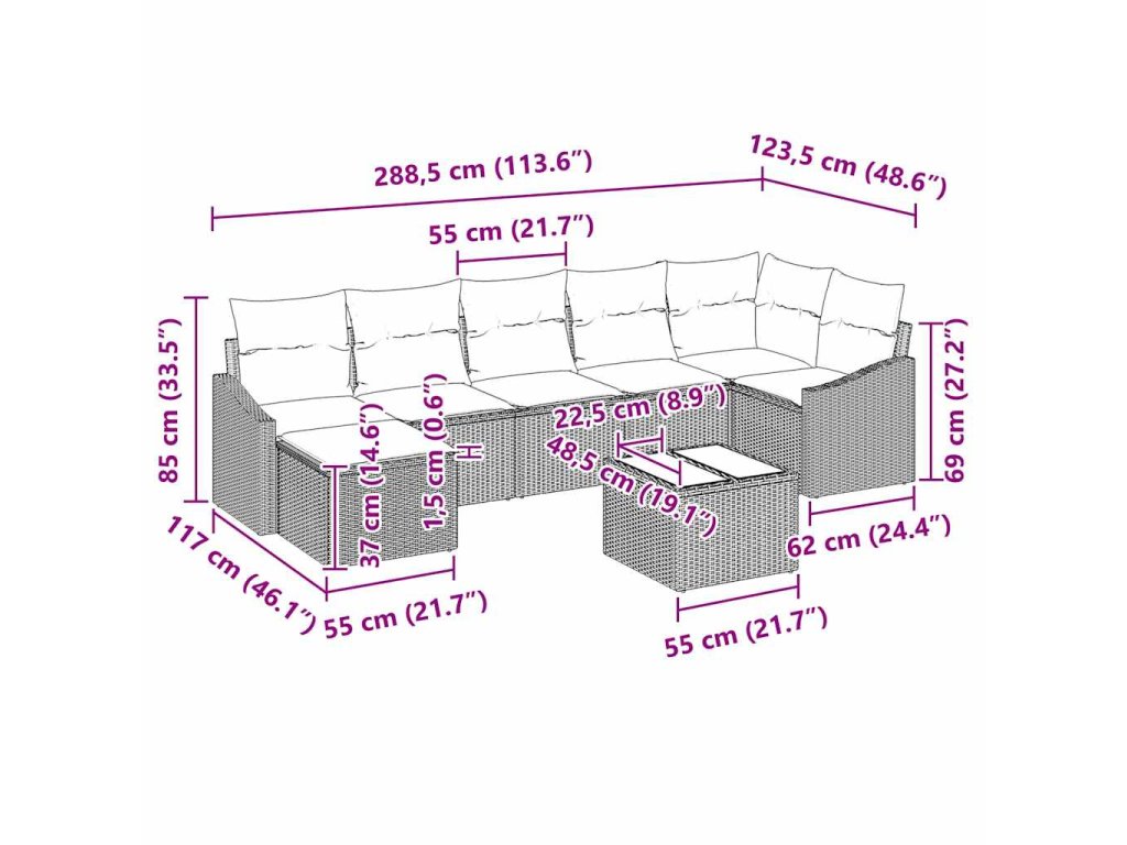 Set pohovek s polštářem 8 pcs Černá polyratan 3346817