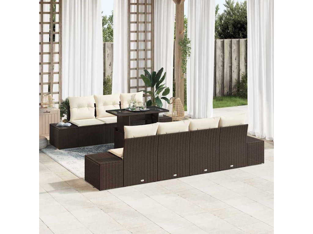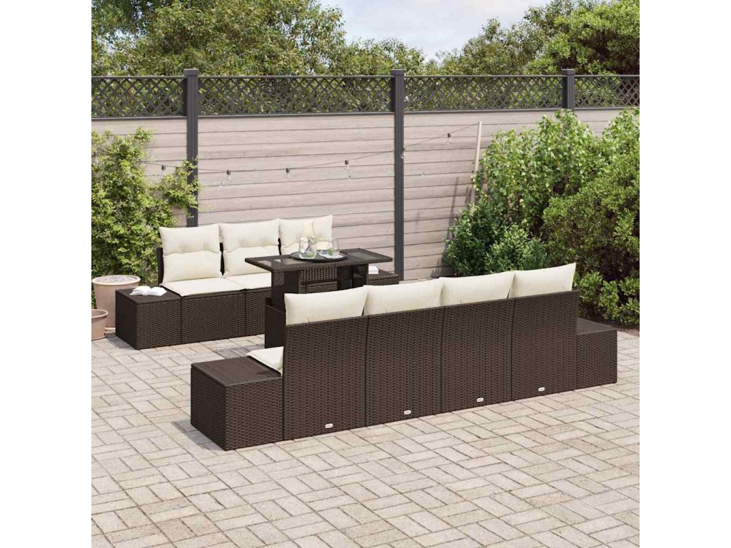 Set pohovek s polštářem 8 pcs Hnědá a krémová polyratan 3349124