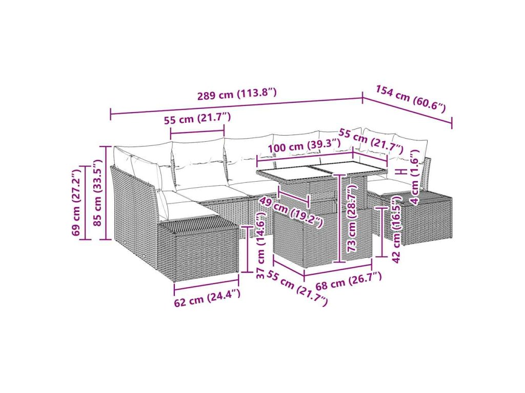 Set pohovek s polštářem 8 pcs Hnědá a krémová polyratan 3349134
