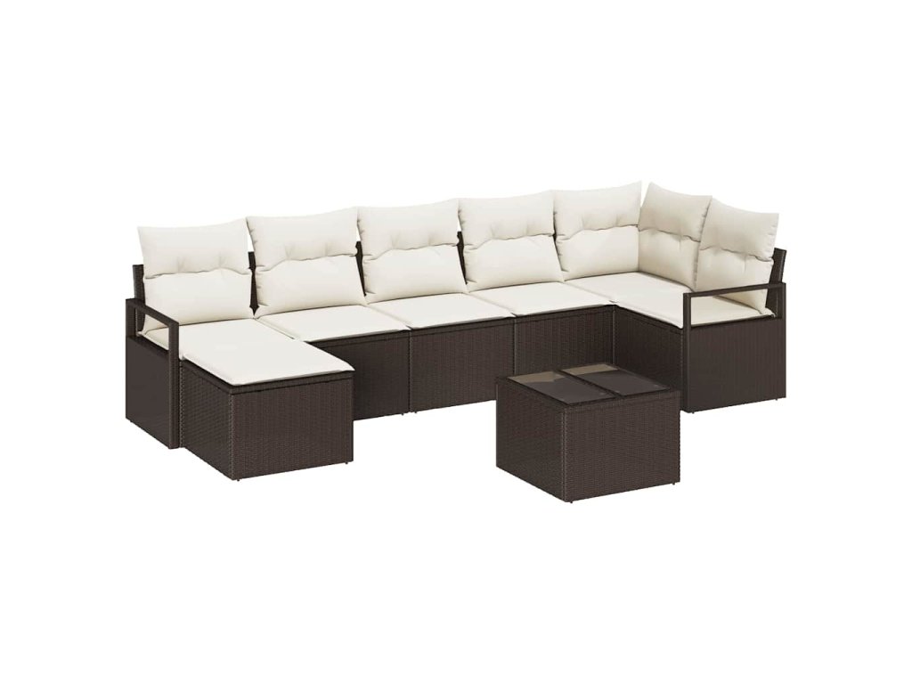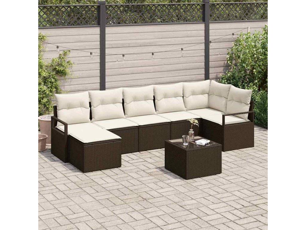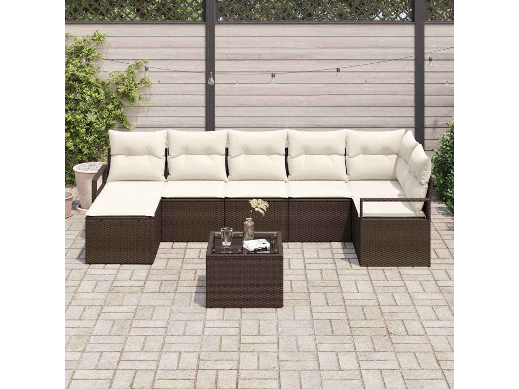 Set pohovek s polštářem 8 pcs Hnědá a krémová polyratan 3355147