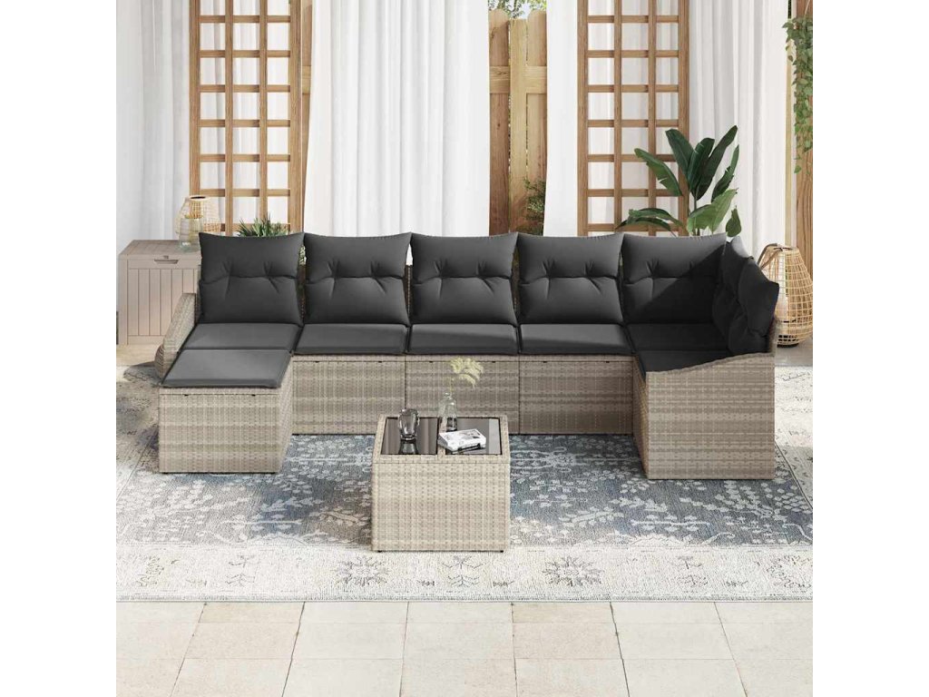 Set pohovek s polštářem 8 pcs Světle šedá polyratan 3346822