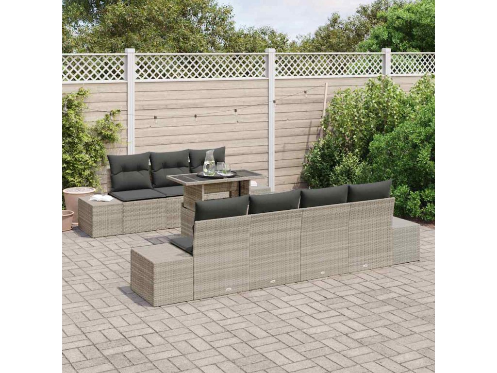 Set pohovek s polštářem 8 pcs Světle šedá polyratan 3349128