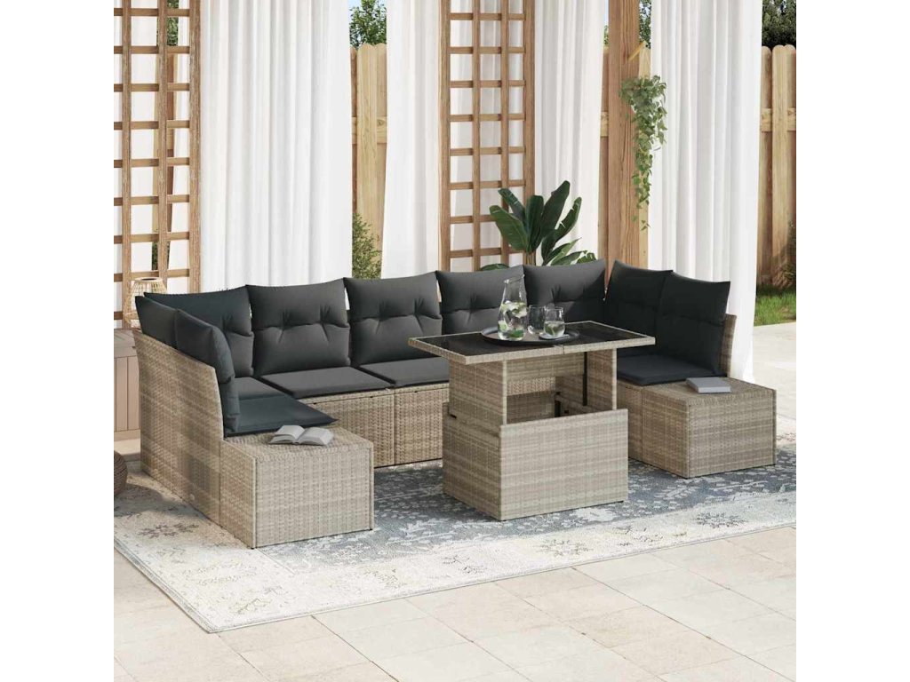 Set pohovek s polštářem 8 pcs Světle šedá polyratan 3349138