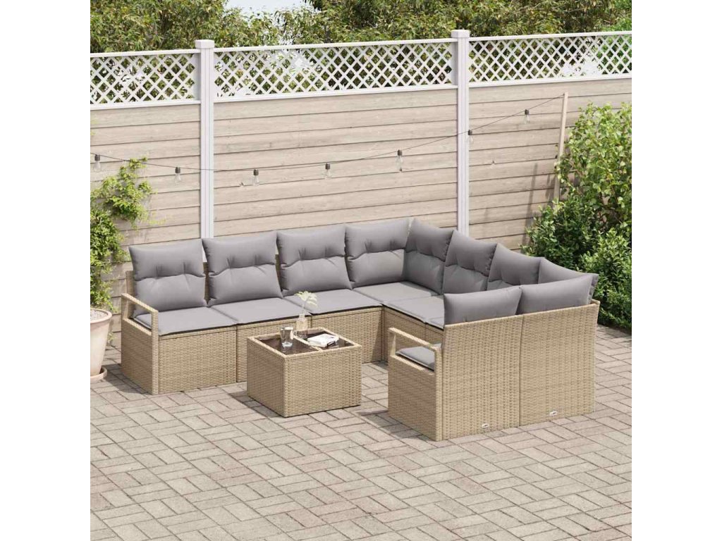 Set pohovek s polštářem 9 pcs Beige a šedá polyratan 3354989
