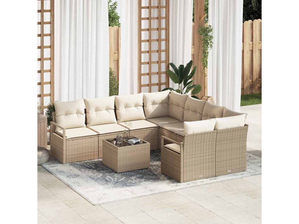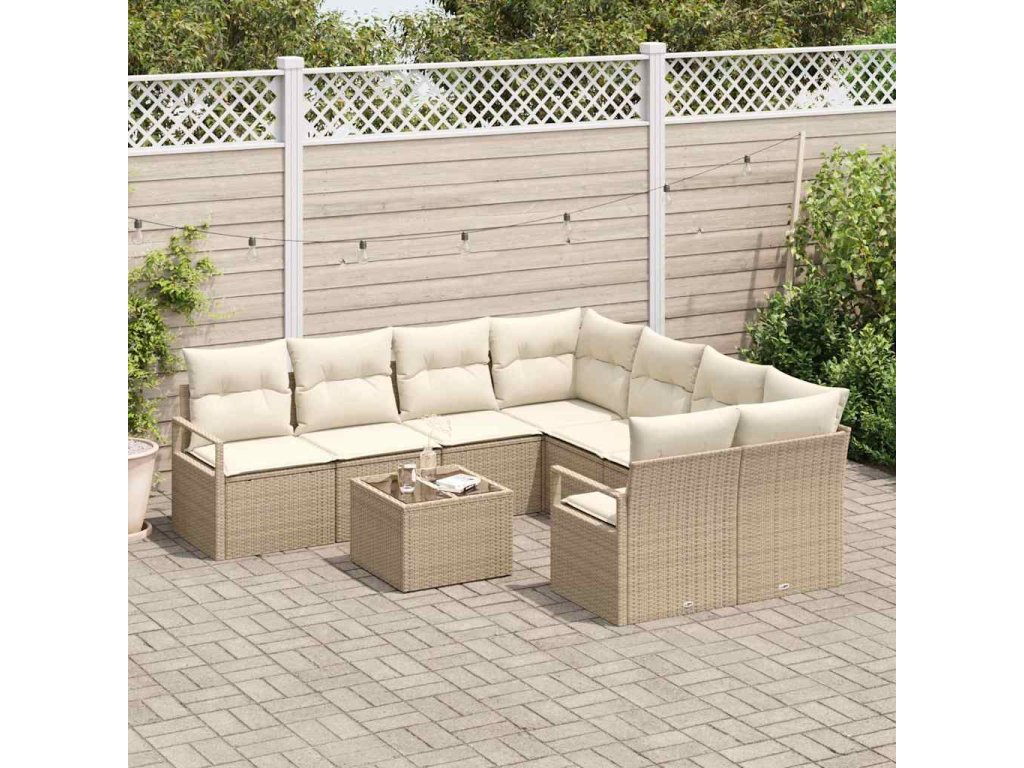 Set pohovek s polštářem 9 pcs Béžová a krémová polyratan 3354990