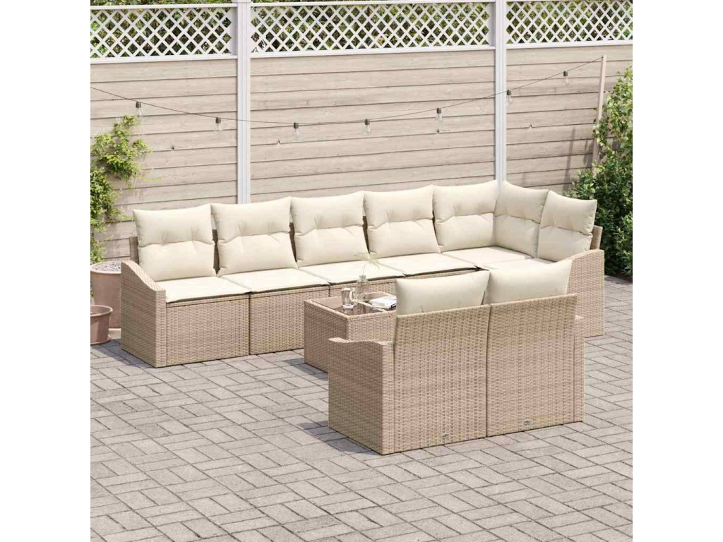 Set pohovek s polštářem 9 pcs Béžová a krémová polyratan 3355450